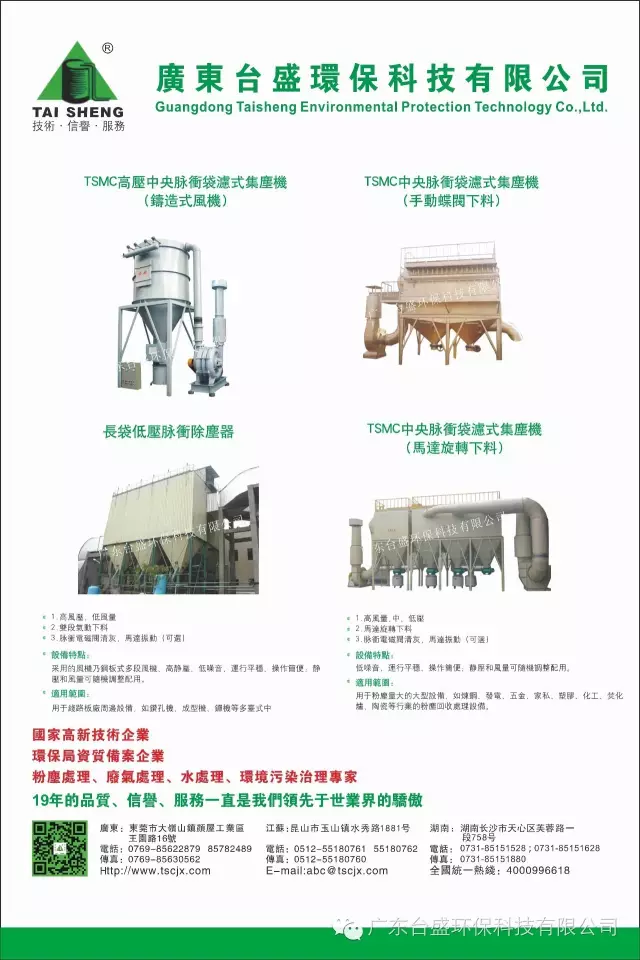 广东台盛环保科技有限公司是专注于粉尘、废气治理、废水处理的环保行业厂家、油烟净化器厂,从事粉尘收集设备、废气处理设备的设计、制造、安装一条龙服务,拥有技术一流的环保业人才和机械设备安装队,沿用台湾先进的生产技术,科学的管理方法,开发污染防治和环保设备的生产、销售、安装。